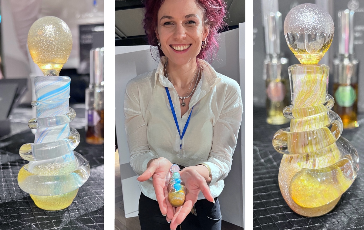 Mit Unda Prisca aus Litauen komme ich intensiver ins Gespräch, da sie auch handgefertigte Einzelflakons anbieten. Sie erzählen, dass sie diese Flakons zusammen mit einer Glasbläserei entwickelt haben.