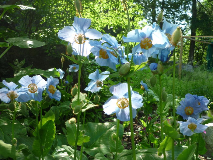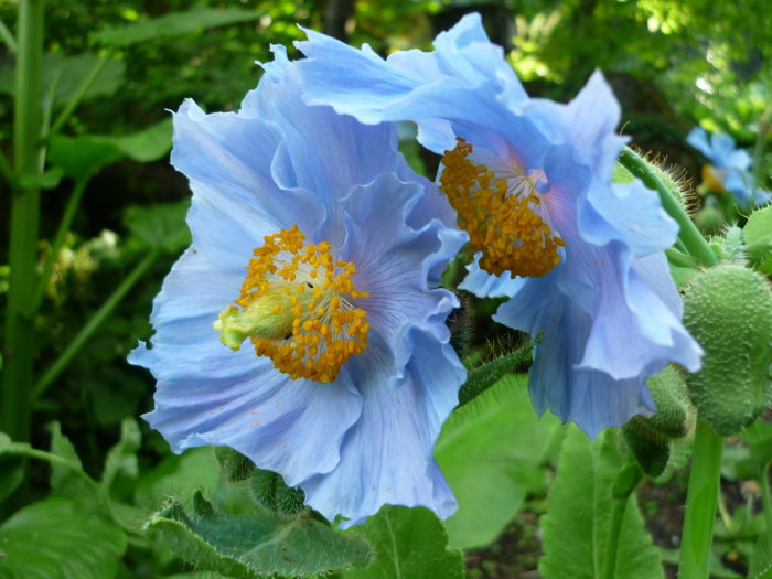 Da bin ich also, und neben dem Tibet-Scheinmohn gesellt sich auch ein Nepal-Scheinmohn, welcher sehr viel grösser ist und pink-rosa leuchtet. Doch die hellblauen Blüten haben es mir mehr angetan, ein visueller Genuss. Aber Duft? Es wäre gelogen, wenn ich sagen würde, dass ich "Coquelicot" wiedererkannt hätte. Das ärgert mich etwas. Hab ich zu wenig auf den Duft geachtet oder gab es etwa tatsächlich nichts zu riechen? Vielleicht werde ich noch ein 2. Mal die blaue Pracht besuchen, um meinen Duft-Eindruck von heute zu kontrollieren. Bis dahin möchte ich euch mit ein paar Scheinmohn-Bildern teilhaben lassen.