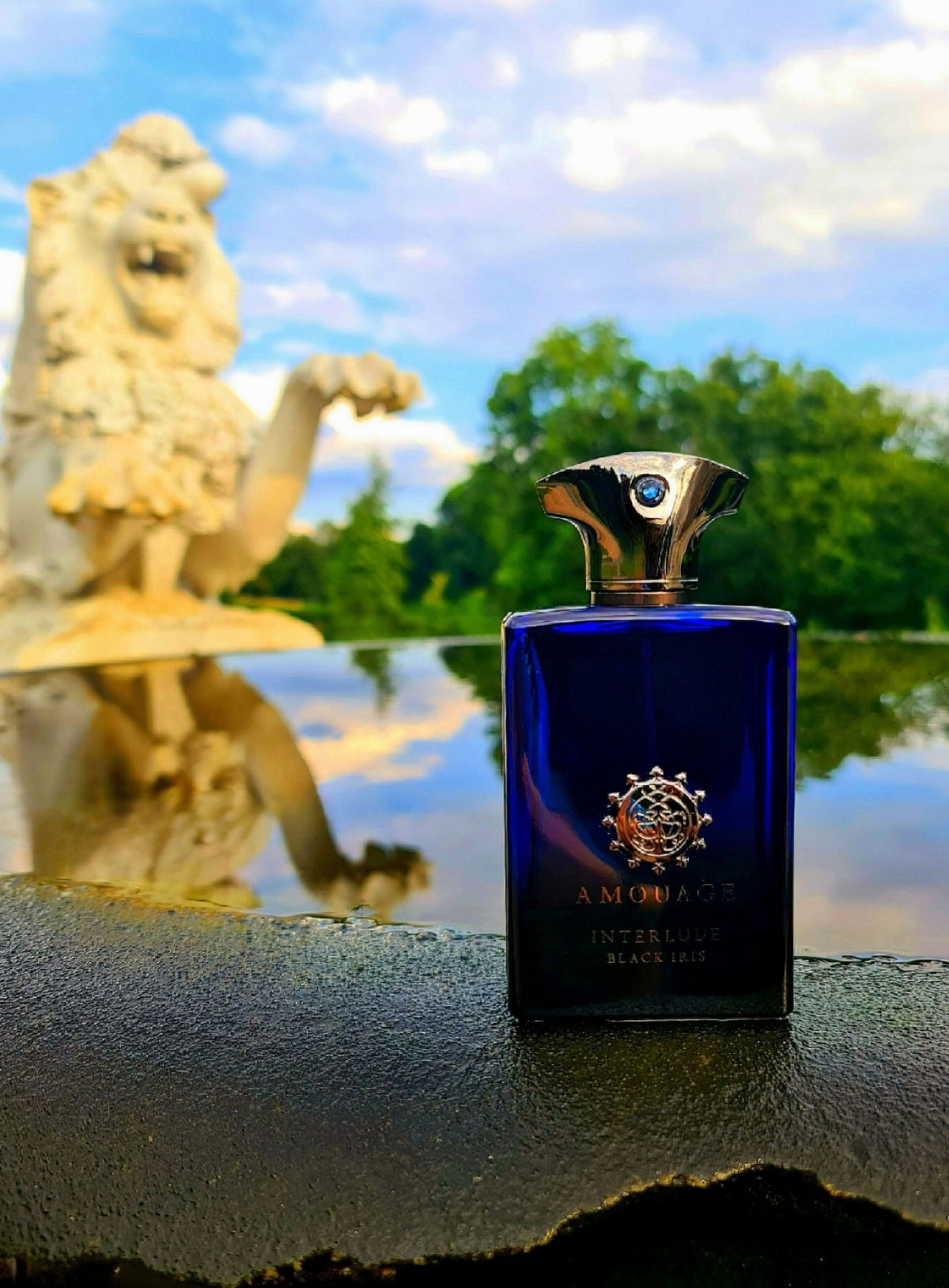 Ich glaube der Löwe wäre schreiend davon gerannt, wenn ich den Black Iris an dem heißen Tag getragen hätte. Ist mal so gar kein Sommerduft aber der Flakon hat so schön zu dem kleinen Brunnen gepasst! 😄