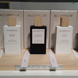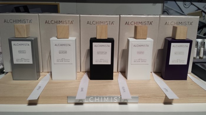 Und kann ich an einem Counter vorbeigehen, ueber dem "ALCHIMISTA" steht ohne zu testen? Nein, kann ich nicht. Alchimista klingt so schoen nach Florenz des Rinascimento, zu Zeiten von Leonardo da Vinci. Mir kommen unweigerlich Bilder eines dunklen Kellergewoelbes in den Sinn, in dem in verschiedenen Glasbehaeltern alle moeglichen Tinkturen und Zaubertraenke hergestellt werden. Ganz im Gegensatz dazu steht das Packaging von "ALCHIMISTA" und auch das auessere Erscheinungsbild von Antonio, einer der Nasen, die fuer dieses Parfumhaus kreieren. Auch Antonio sieht nicht aus wie Catweazle, sondern ist ein junger Italiener Mitte 20 und unheimlich verliebt in das was er tut. Wer es noch nicht wissen sollte, mit verliebten Italienern / Italienerinnen kann man SUPER Gespraeche fuehren. Da schwingt beim Erzaehlen so richtig Herzblut mit. Sie nennen das "Io lo faccio con passione" (Ich mach das mit meiner ganzen Leidenschaft) und das riecht man dann auch. Mein Testkandidat war Antonios "ENAPAY", ein frisch-stechender Duft, wie er ihn selbst definiert. Auf dem Papierstreifen hat er mich spontan an "Itasca" von Lubin erinnert, einen Duft, den ich bereits besitze. Auch von "ENAPAY" habe ich eine Probe mitbekommen, die ich in den naechsten Wochen ausfuehrlicher testen werde.
