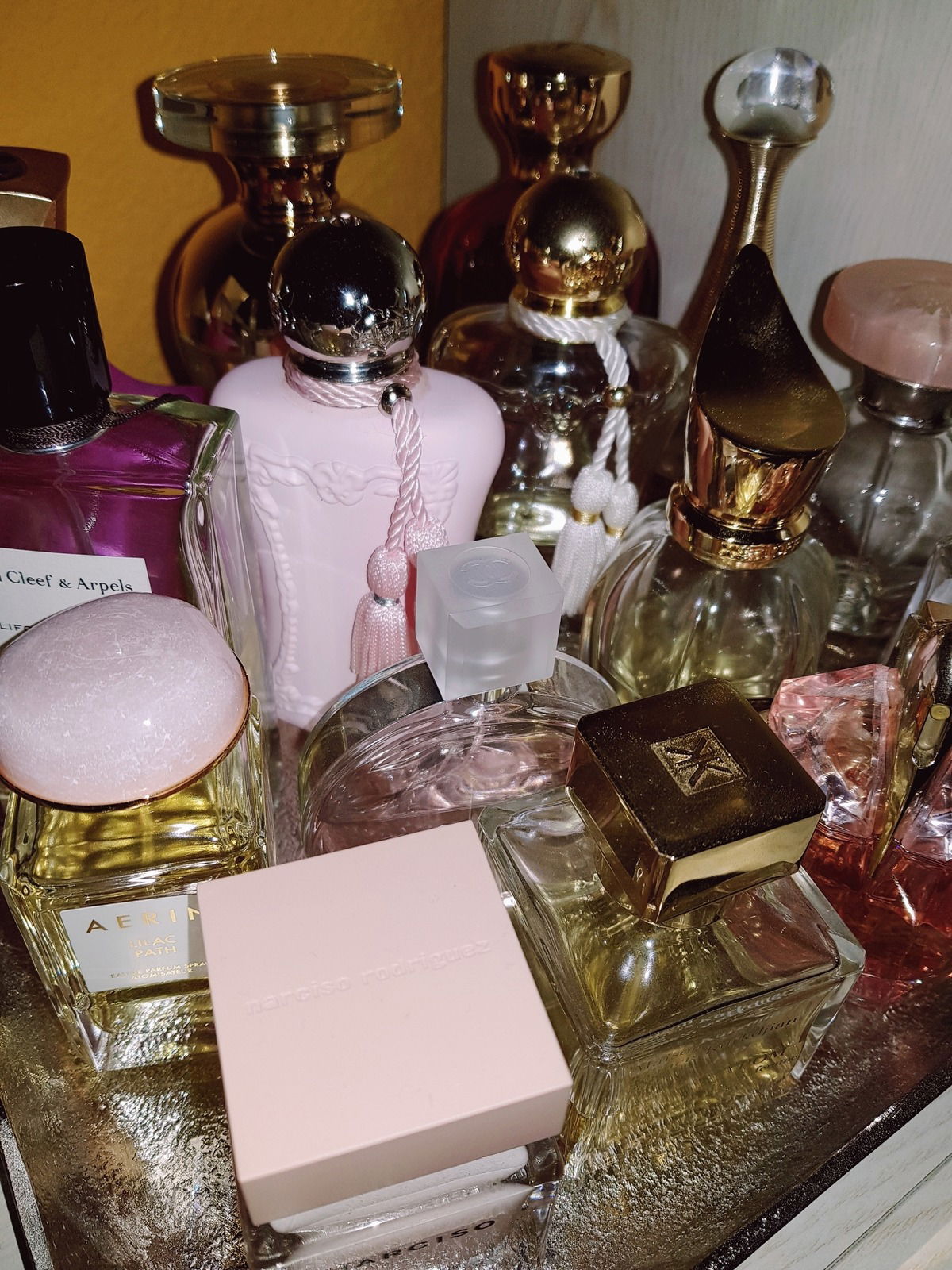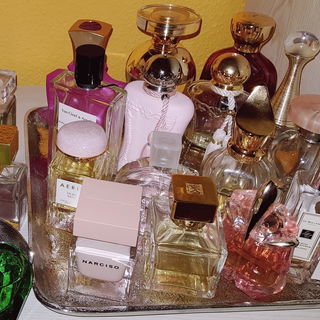 Meine Düfte sind ja überall in der Wohnung verteilt, aber eventuell sollte ich echt auch mal anfangen, diejenigen, die ich in der kommenden Zeit verstärkt tragen möchte, gesammelt aufs Tablett zu stellen um einen besseren Überblick zu erhalten.