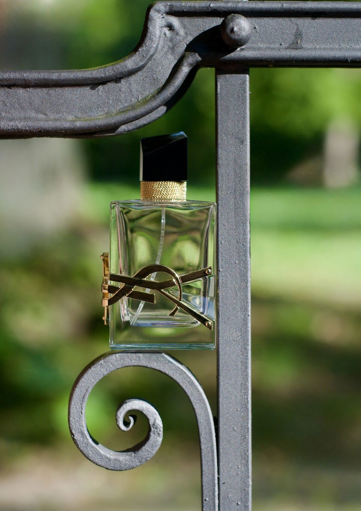 sehr schönes Foto mit dem zwei geschwungenen Elementen, Zaun und Flakon...🥰💙