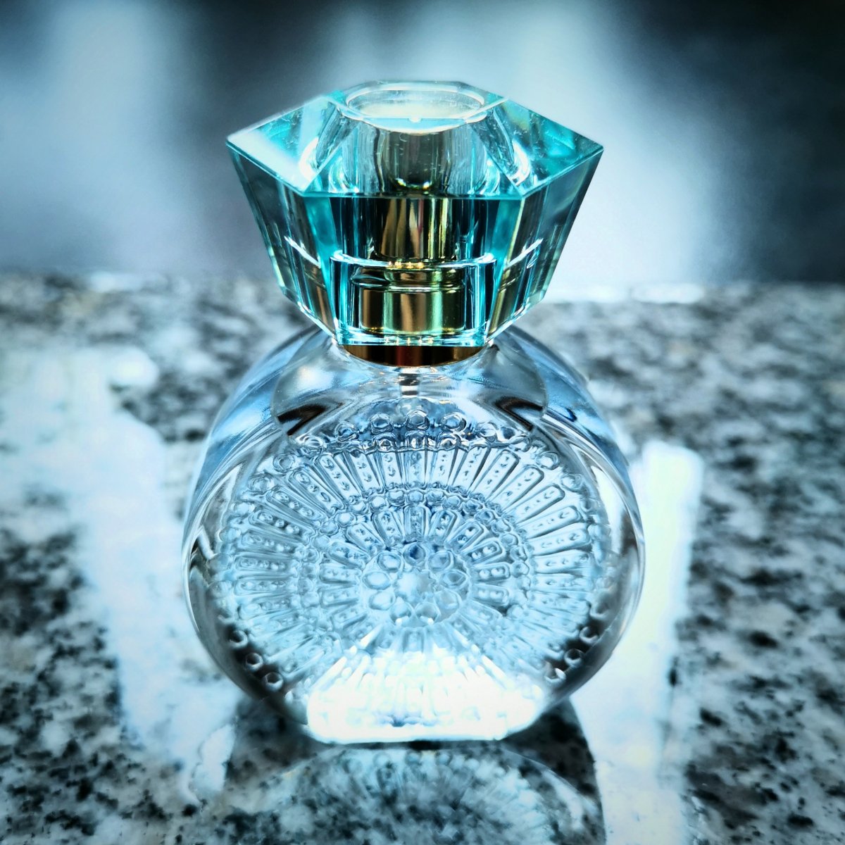 Die Farbe des Fotos ist sehr treffend - perfekt zum Flacon!