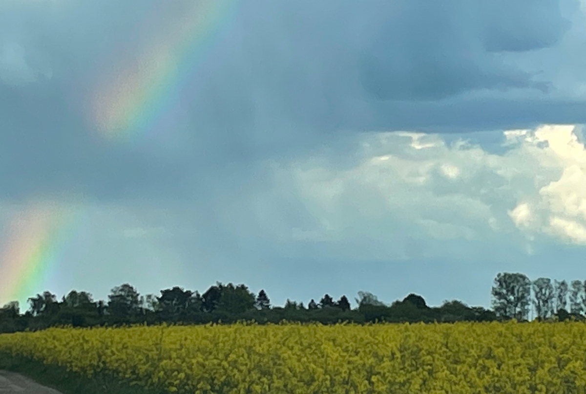 Ich sitze hier, vor mir meine zwei halben Schrippen, Semmeln, Brötchen oder Rundstücke, ganz dünn mit Honig über der aufgekratzten Butter. Ein Genuß, für den ich den Bienen sehr dankbar bin.