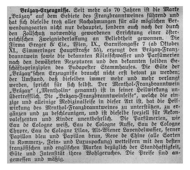 Eau de Cologne de Brázay