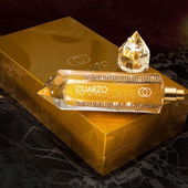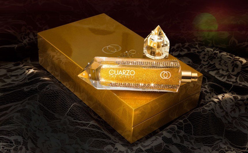 Der Flakon ist hier ein Liege-Flakon, auch wieder neben dem Duft gefüllt mit Goldstaub und drei Diamanten, ganz konsequent im Sinne von Cuarzo the Circle.
