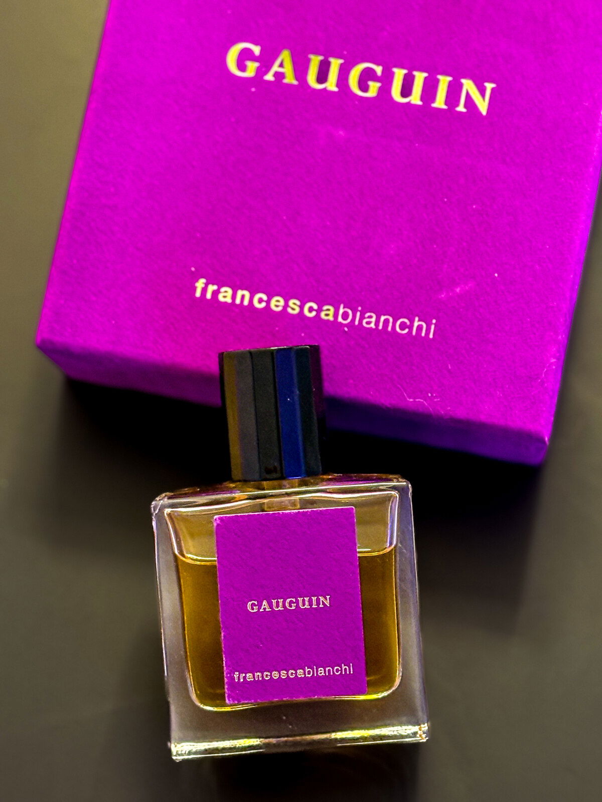 Laut Francesca Bianchis Homepage hat „Gauguin“ eine Basis, die von „Sex and The Sea“ inspiriert ist, aber im Vergleich samtiger und weicher sein soll, und darauf den beschriebenen Akkord aus tropischen weißen Blüten, der von Tiaré dominiert wird. Das trifft es ganz gut.