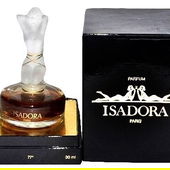 Isadora ist eine Hommage an die am 27. Mai 1877 geborene und am 14. September 1927 verstorbene Tänzerin und Choreografin Isadora Duncan. Das Parfum wurde anlässlich ihres fünfzigsten Todestages 1977 in Paris lanciert. Sie war die Pionierin und Wegbegleiterin des modernen und sinfonischen Ausdruckstanzes. Da sie eine Gegnerin des klassischen Balletts war versuchte sie den Tanz der Antike wieder zu beleben. Was ihr auch erfolgreich gelang. Sie orientiert sich dabei sehr an griechischen Schönheitsidealen. Sie war eine sehr charismatische Persönlichkeit und schaffte durch ihre meist sehr freizügigen Auftritte die sie in Tuniken tanzte das Publikum zu fesseln. Was ihr europaweit und später weltweiten Ruhm einbrachte. Isadora Duncan war eine begnadete, disziplinierte und hoch-talentierte Tänzerin,was ihr grandiosen Weltruhm erbrachte. Doch was ihr tänzerisch gelang,gelang ihr nicht im privaten Leben. Sie verlor drei Kinder. Die ersten beiden bei einem Unfall in Paris als der Chauffeur das defekte Automobil reparieren wollte. Der Wagen geriet ins rollen und stürzte in die Seine. Beide Kinder ertranken und auch das Kindermädchen. Einige Jahr später verstarb ihr neu geborener Sohn gleich nach der Geburt. Sie hatte kein Glück mit Männern und wurde mehrere Male verlassen. Sie starb in Nizza bei einem sehr makabren Autounfall. Ihr zu langer Schal verfing sich in den Speichen des Hinterrades ihres neuen Wagen während sie eine Probefahrt machte und brach ihr das Genick. Das Parfum Isadora war eine Huldigung an eine der wohl größten Tänzerinnen der Geschichte. Eine Huldigung an ihre Schönheit,Ihre Grazie und ihre beeindruckende Persönlichkeit.
