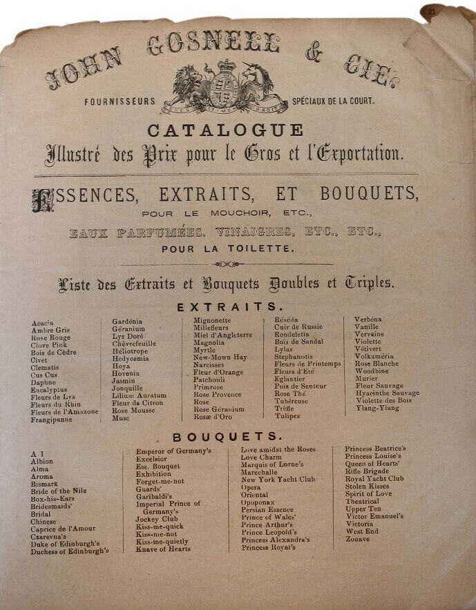 Ein Parfum von John Gosnell & Co für Damen und Herren, erschienen im Jahr 1878. Die Produktion wurde offenbar eingestellt.
