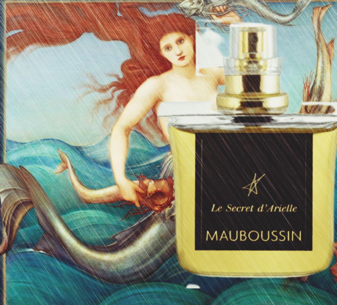 Es ist mehr eine selbstbewusste und mit subtiler Sexiness ausgestattete Frau namens Arielle, mit entsprechend aufrechter Haltung und zielstrebigem Gang. Sie weiss um ihre Wirkung und tut was nötig ist, um zu bekommen, was sie will. Es schleicht sich mir der Gedanke ein, dass sie langes schwarzes Haar hat, zu einer Hochsteckfrisur gebändigt und mit einzelnen, seitlich am Gesicht herabhängenden Strähnen, die an ihren Enden in eine grosse Locke münden und den Gang der Trägerin wippend mitgehen. Die Frau ist eine auffällige Schönheit und hat orientalische Gesichtszüge, der Teint entsprechend dunkler. Die Augen sind schwarz umrandet und der Lidschatten zu einem dunklen, mystischen Hauch verblendet, der die braune Augenfarbe noch mehr akzentuiert. Die Lippen sind in kräftigem Rot bemalt und glänzen leicht. Die Powerfrau tragt eine hochgeschlossene Bluse in einem warmen Goldton, um den Hals schlingt sich eine schwarze Satinschleife, schmal und leicht schimmernd, als wollte sie den Knöpfen an der Bluse und dem Kragen noch zusätzlich helfen, den schlanken Hals verborgen zu halten. Unter einem Arm sitzt ein Briefcase, von einer mit Goldschmuck bestückten, zarten Hand mit rot lackierten Nägeln ergänzend gehalten, die andere Hand ruht lässig in der Hosentasche. Den schwarzen, modern geschnittenen Bundfaltenhosen folgen zarte, hochhackige Slingpumps mit einer Masche am Bout. Die Frau trägt keinen Mantel, kein Cape, keinen Schal. Sie trägt Mauboussin „Le Secret d’Arielle“. Der Duft folgt ihr auf Schritt und Tritt, umhüllt sie wie eine Aura und doch ist er mehr als das.