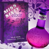 Das kleine, purpurfarbene Fläschchen ist ein bisschen zur Seite geneigt und erinnert mich an eine Wunderlampe (wer die Serie "Bezaubernde Jeannie" kennt, weiß, was ich meine). Auf dem silbernen Hals steht nur "Miss Sixty", ohne Namen.
