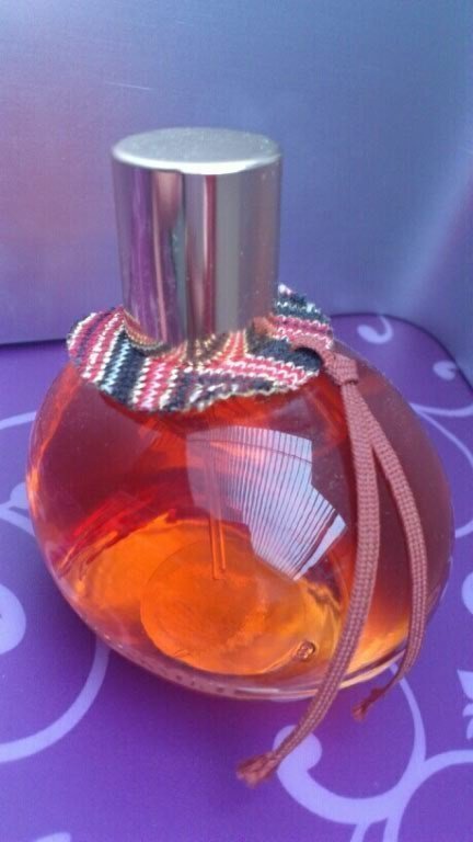 Nur der Flakon…den empfinde ich wirklich nicht als Glanzleistung! Das Stoff-Fetzchen und die beiden Bändchen erinnern mich an die „home made“ Marmeladen mit Karodeckel, ohne aber mit deren Landhaus-Charme mithalten zu können. Außerdem wirkt der eiförmige Flakon recht klobig. Na ja, es kommt ja primär auf den Duft an...