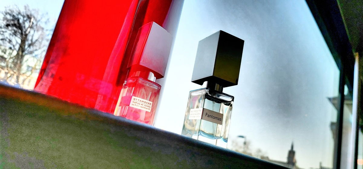 Als bekennender Liebhaber der damaligen Filme wollte ich den neuen Gualtieri testen, auch wenn ich mir fast sicher war, dass er mich ebenso enttäuschen würde wie Black Afgano, Duro, Blamage oder die ganzen Orto Parisi-Düfte. Mir erscheinen all diese Düfte grob, laut, (sicherlich bewusst) ordinär, grell und überaus synthetisch. Während allerdings viele Düfte von Alessandro Gualtieri eher einen orientalischen Charakter haben, gehört Fantomas zur Gruppe der helleren Düfte, die dennoch mit enormer Aura und Haltbarkeit punkten wollen. Ich persönlich störe mich sehr an einer derartig starken Haltbarkeit, denn ich mag keine Düfte, die (1.) eine gründliche Dusche überleben, mir (2.) tagelang auf Sakko oder Schal haftend hinterher laufen und (3.) auch noch den Kollegen im Nachbarbüro oder den gesamten Konferenzraum beduften. Mich stört eine solche überbordende Aura massiv an anderen und so will ich auch selbst nicht wahrgenommen werden. Lieber sprühe ich öfters nach und rieche den Duft vor allem hautnah. In diesem Zusammenhang ein kleiner Exkurs: In meiner mehr als 35jährigen Parfumerfahrung mit langen Phasen intensiver Sammelwut - schon lang vor Parfumo oder Basenotes - bekam ich vor allem dann "Komplimente" für einen Duft, wenn ich ihn zu stark dosiert hatte, was mir dann auch regelmäßig besonders peinlich war. Stilvoll dosierte Düfte werden vom Umfeld nicht sofort wahrgenommen und erschließen sich in ihrer Komplexität nur bei großer Nähe - und die sollte geliebten Menschen vorbehalten bleiben. Ende des Exkurses.