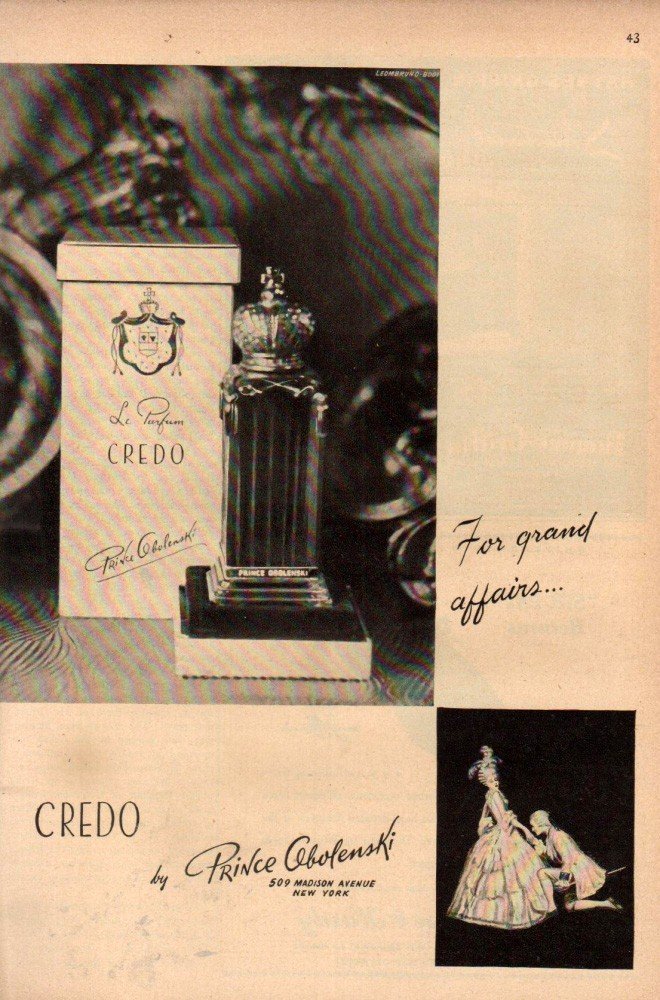 Ein Parfum von Prince Obolenski für Damen, erschienen im Jahr 1943. Die Produktion wurde offenbar eingestellt.