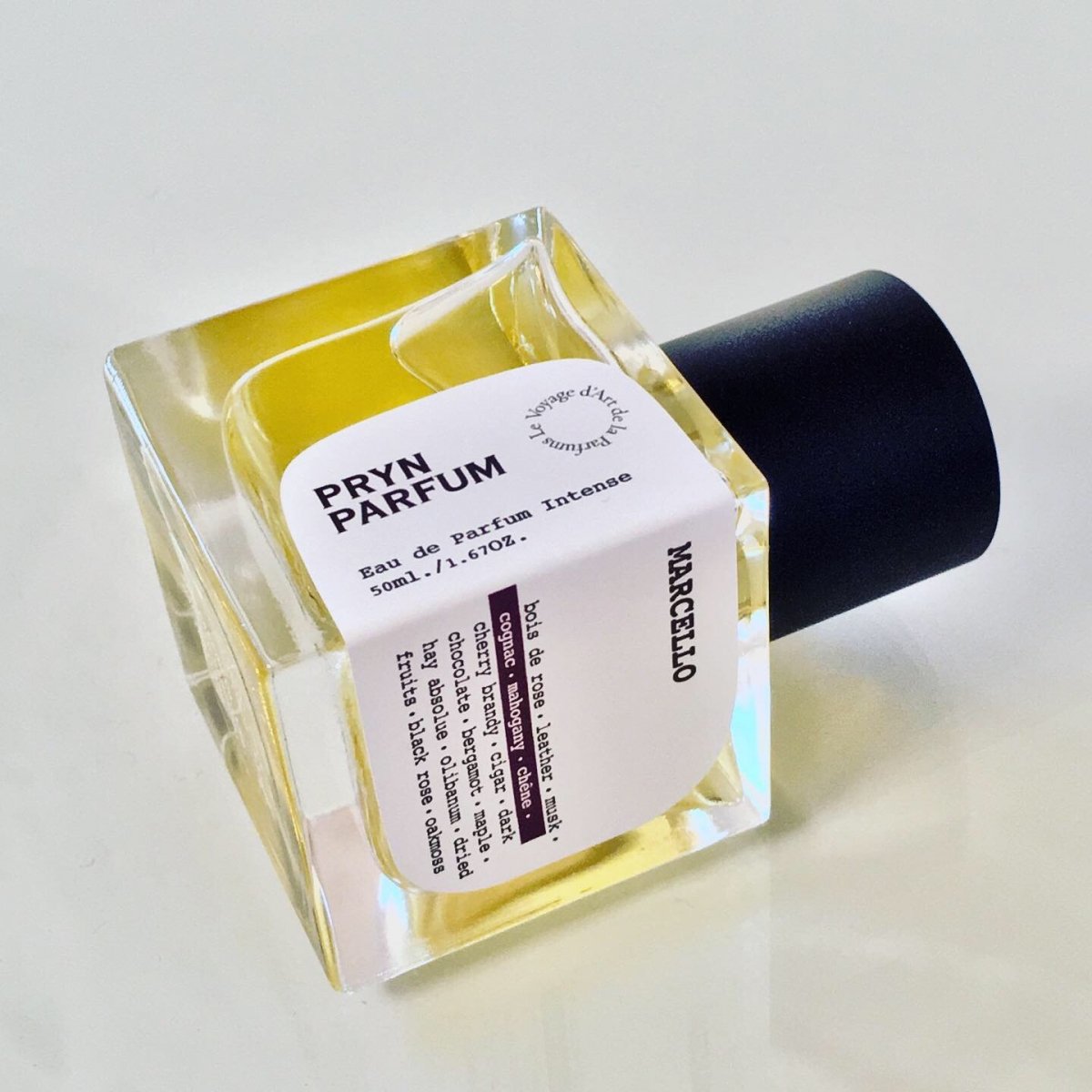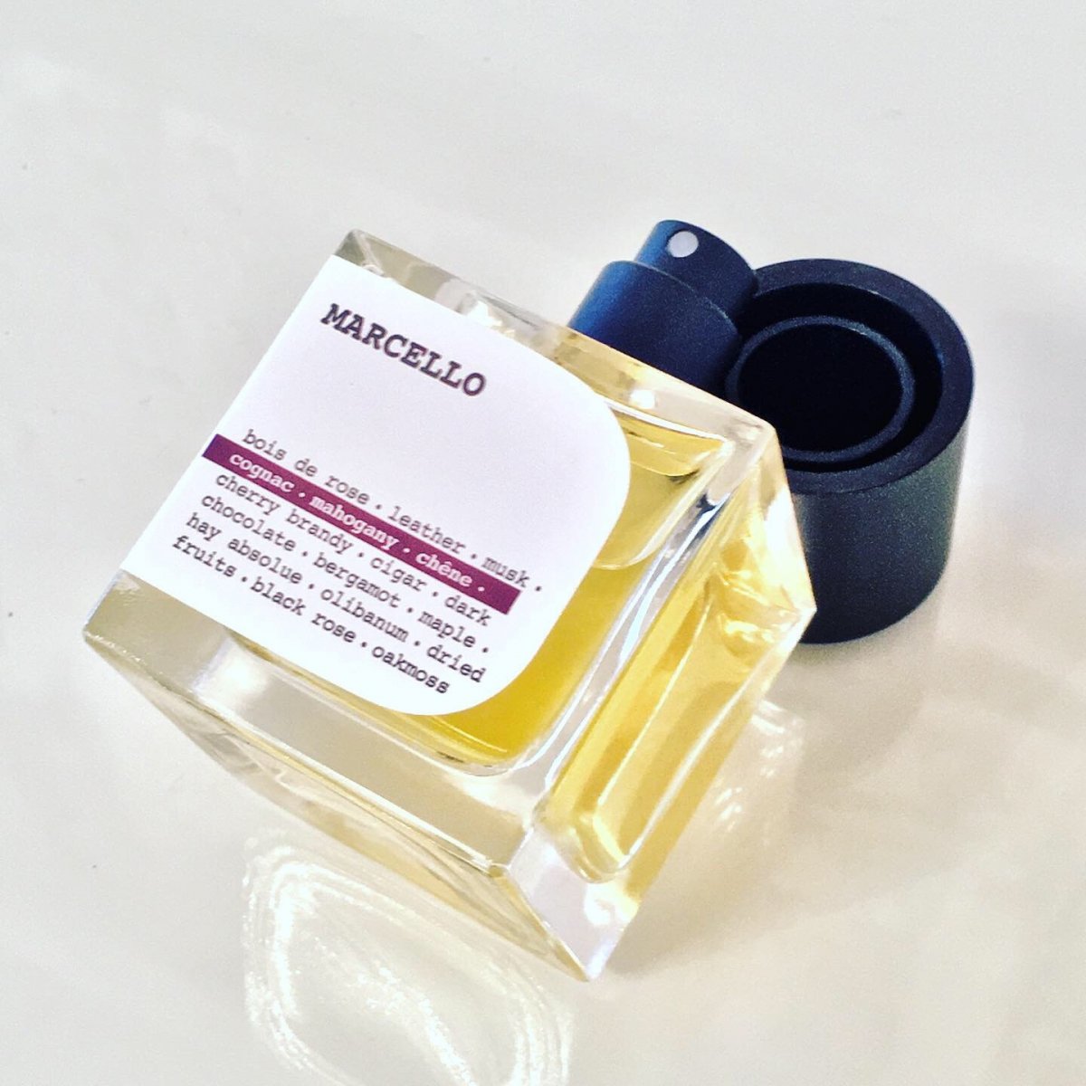 Marcello strahlt fruchtig, aber nie bowlig oder obstkorbig. Leicht litschiesk, Sternfrucht, Drachenfrucht, alles was Sie nur vom Hörensagen her kennen. Diese kleinen gelben Kugeln, Syphilis. Danach riecht Marcello untenrum.