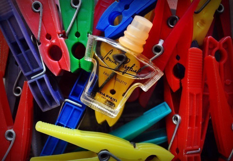 Daß sie auch Düfte in Auftrag gegeben hat, habe ich erst durch die Sammlung einer Bekannten erfahren, die zwei Parfums von Sonia ihr Eigen nennt. Der eine ist "Septiene Sens", der auf meine Wunschliste gekommen ist, und ebendieser eben beschriebene, der ein "T-Shirt" als Flakon hat. Den hat sie mir günstig abgegeben....