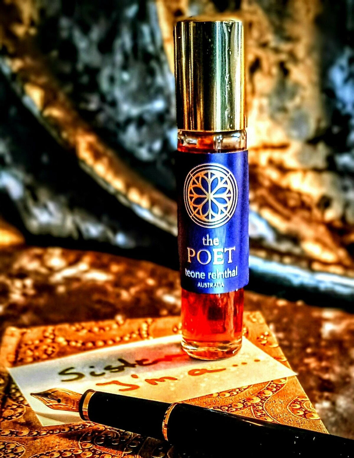 Mit "The Poet" ist Teone ein großer Wurf in der Tradition klassischer Chypre-Düfte gelungen. Da ist die Eröffnung aus herb-grün-zitrischen Noten, prickelnder Zitronenverbene, spritziger Bergamotte, hesperidisch-würzigem Muskateller, ätherisch-bitterem Tee- und Kampferbaum, kühlend und frisch. Ein Hauch Lavendel leitet über ins blumige Herz, in welchem vor allem seidig-fleischige Jasmin- und Tuberosenaromen deutlich werden, bitter beleuchtet von Galbanumharz. Schon bald wirft die Basis ihre grün-erdigen Schatten voraus, zuerst Vintage-Eichenmoose, holzig-knarzig, dann zunehmend erdig-rauchig-ledrig von Nagarmotha- und Vetiverwurzeln, feuchterdig von Patchouli mit dezenten Laubnoten (Veilchenblatt) und immer dunkler, bitterharzig-holziger werdend. Das ganze ist von Anfang bis Ende eine zeitlose und stilsichere, moderate und langanhaltende, duftgewordene Poesie.