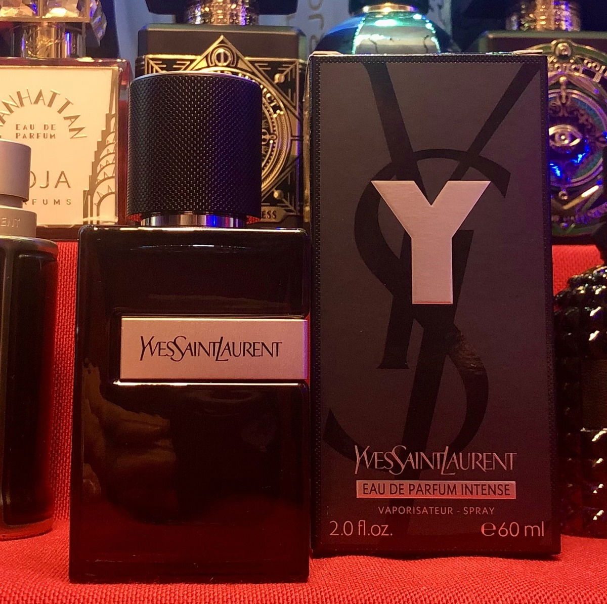 Der YSL Y intense ist wie meine Überschrift schon vermuten lässt meiner Meinung nach das Eau de Parfum in erwachsener. Er eröffnet mit einer Citrus Frische, welche aufgrund der Abwesenheit der Synthetik und des Apfels vom EdP um so mehr heraussticht. Nachdem diese Frische sich nach etwa 10-15 Minuten etwas in den Hintergrund bewegt hat, kommt die typische Y DNA durch. Ingwer, Salbei und Lavendel. Was anders ist, ist eben die Abwesenheit vom süßen Apfel und der stechenden Synthetik die mich am Y EdP gestört hat. Ich habe oft gehört, dass in dem Parfum auch Iris enthalten ist, und wenn ich mich darauf konzentriere kann auch ich etwas leicht blumiges herausriechen, was allerdings bestimmt auch auf die Rosengeranie zurückzuführen ist. Das ist allerdings keinesfalls emaskulierend sondern lässt das ganze lediglich etwas abgerundeter wirken. Nach etwa 2-3 Stunden wird der Duft im Drydown dann letztendlich eher süß und holzig. Meiner Meinung nach wird er sogar etwas cremig und ein ganz klein wenig vanillig, auch wenn ich in der Duftkomposition keine Vanille finden kann.