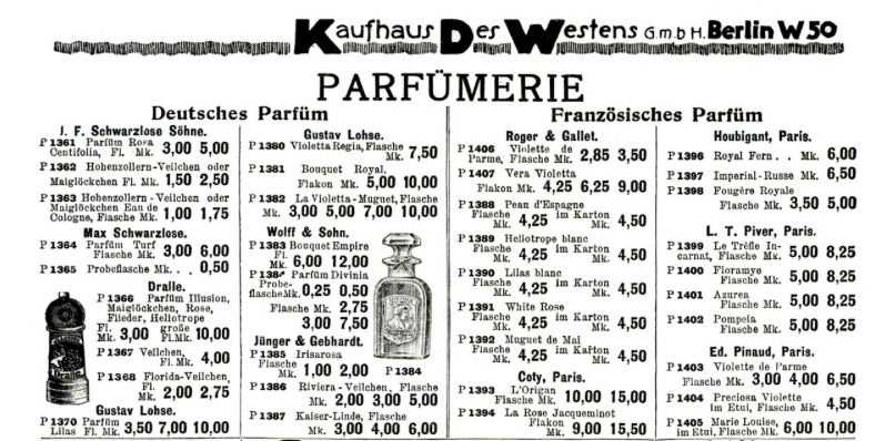 Ein Parfum von Jünger & Gebhardt / Patrizier Haus Köln für Damen, erschienen im Jahr 1904. Die Produktion wurde offenbar eingestellt.