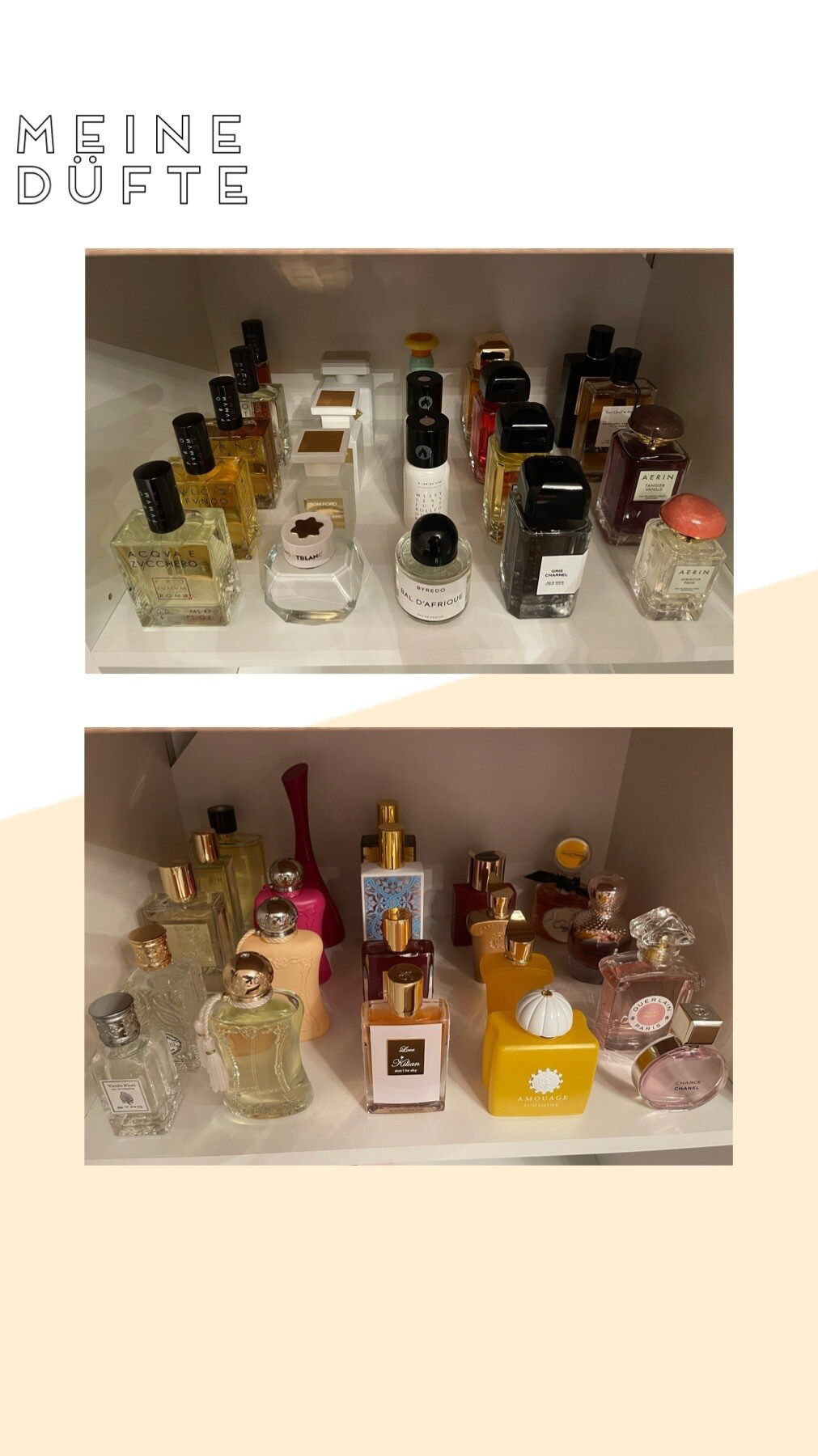 dann teile ich auch mal meinen aktuellen Bestand 😀 Jetzt sind es nur noch ca. 50 verschiedene Düfte, nachdem ich vor 2 Jahren mal bei knapp 80 war, habe ich mich doch vom ein oder anderen getrennt.