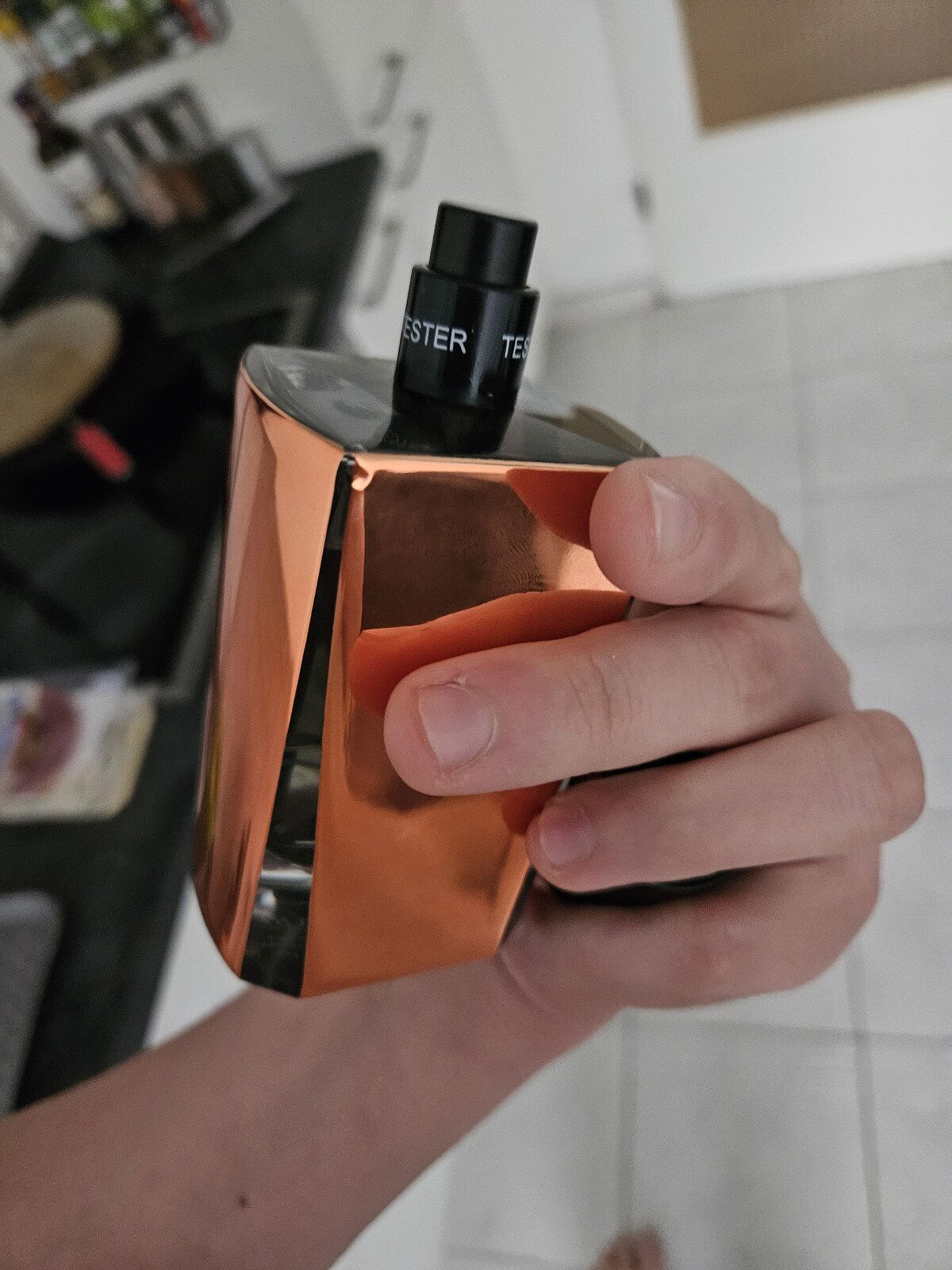 Verpackung gab es nie. Obwohl es in OVP angepriesen war. Fotos sind jetzt oben zu sehen, Das Tester Dingen hab ich ab gemacht, das war drauf gedreht wie ein Gewinde. Der Duft gelangt auch schnell zu seiner Basis fast schon wie verwässert. Die Fruchtigkeit hält nicht lange. Fazit: Nach 2 Stunden tragen ist der Duft gar nicht mehr existent.