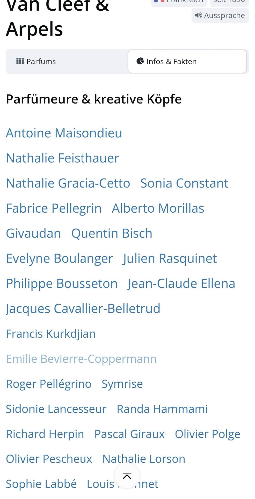 hin und wieder sehe ich ein paar Düfte von VanCleef & Arpels und habe auch schon eine Handvoll Proben bekommen. Bislang hat jedoch nichts gezündet bzw mir mehr vermittelt als die DM-Auswahl um die Ecke. Garantiert habe ich die besten übersehen, sonst gäbe es ja nicht so viel Auswahl und gute Bewertungen.