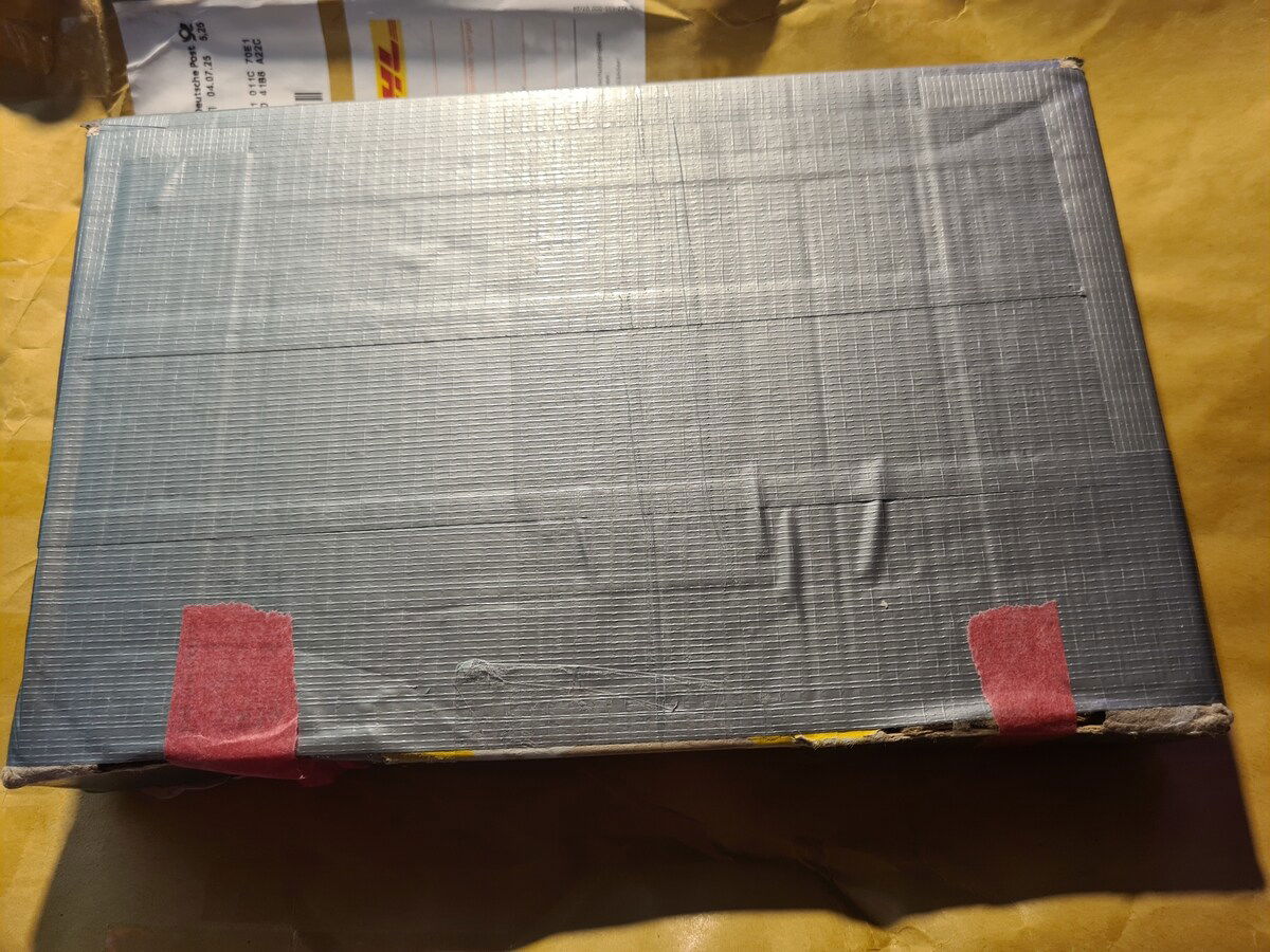 Keine Ahnung wie nachhaltig es ist jedes Mal eine neue DIN A4 Versandtasche verwenden zu müssen um das Panzertape-Ungetüm verpacken zu können. Der Karton ist zwar jetzt stabil, aber mir wurde mal sehr eindringlich beim Versand eines weit weniger zu- und überklebtem WB mitgeteilt, dass dies nicht versendet werden könne und es so Sperrgut für 30+€ gewesen wäre...