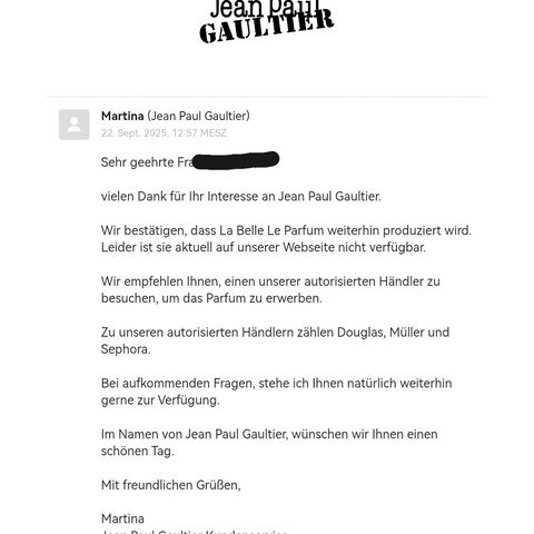 Die reformulierte Version riecht sehr ähnlich, hat aber nicht mehr diese Note die mir Kopfschmerzem macht, deshalb bin ich jetzt umso glücklicher. Ich habe mir vor kurzem eine Flasche gekauft und sprühe so sehr, sie ist schon zu einem Zehntel leer, normalerweise sprühe ich zurückhaltend, aber dieser Duft hat es mir einfach angetan- und mein Umfeld scheint es auch positiv wahrzunehmen. Wie auch immer: nun verschwindet der Duft plötzlich überall, in der Parfümerie vor Ort sind nur noch Reste, wenn überhaupt, online ist er mittlerweile sogar auf notino weg, nur noch bei ebay zu haben. Ich kann mir ehrlich gesagt nicht vorstellen, dass JPG einen so beliebten Duft einstellt und wollte fragen, ob von euch jemand näheres weiß. Soll vielleicht der Flakon angepasst werden, ich könnte mir vorstellen, dass sie wie es z.B Guerlain auch macht, aus Kostengründen nur noch einen Einheitsflakon verwenden wollen, da käme ja z.B der Divine-Flakon in Frage.