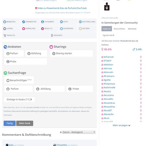 Oh, das habe ich eben erst bemerkt, dass man hier nicht mehr im Forum auf die Suche gehen kann. Was ich aber super ärgerlich finde ist, dass viele ihre Souks nicht aktualisieren. So suchte ich nun wieder einmal einen Duft und habe etliche angeschrieben, die a) vergessen hatten den Souk zu aktualisieren, da der Duft weg ist und b) nur Paypal akzeptieren. Was ich auch merkwürdig finde, da ich ja in diesem Falle kaufe und ich das Risiko eingehe. Ich habe kein Paypal -Konto und möchte auch keines.