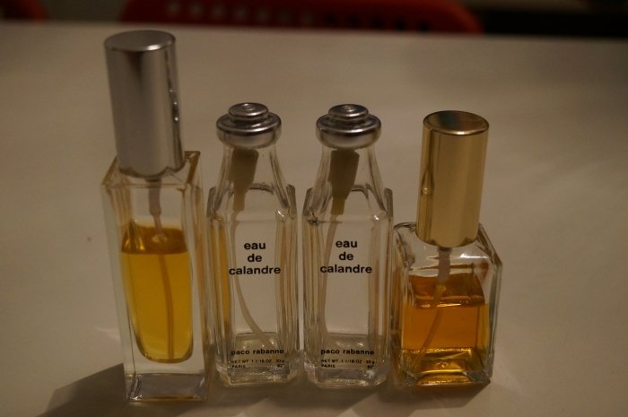Derjenige, wo sich überhaupt nichts mehr tat. Kein Zischen, nichts. Wir nahmen an, dass da bereits das ganze Treibgas entwichen war. Hier ebenfalls das obere Teil vom Sprühkopf abgenommen und den Schlauch leicht nach unten gedrückt, den Flakon nicht komplett geöffnet. Hier haben wir mit Hilfe eines Parfumtrichters, weil der andere Flakon schmäler war, den Atomiseur wieder kopfüber auslaufen lassen. Allerdings dauerte es hier wesentlich länger, bis alles umgefüllt war. Was meine Annahme bestärkt, dass das ganze Gas schon entwichen war.
