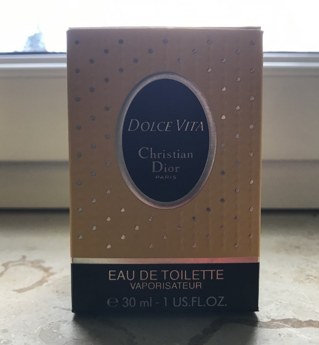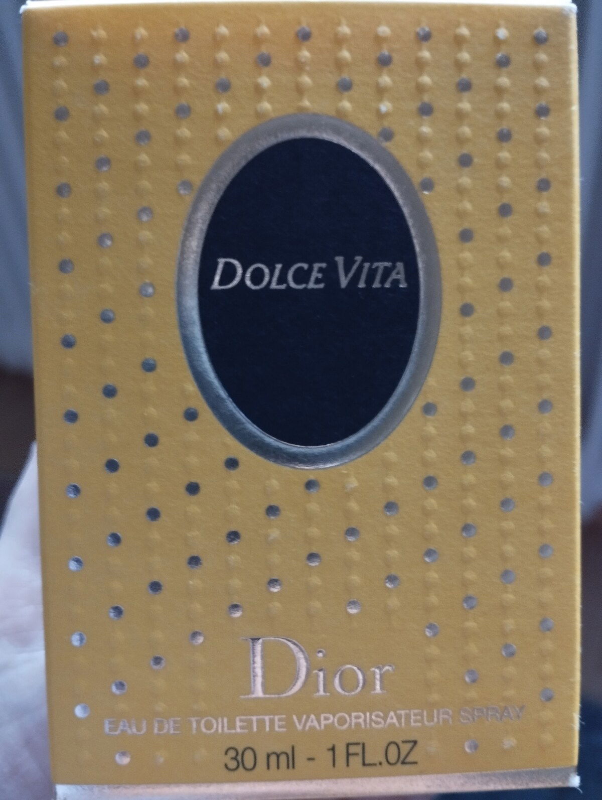 Wie man das alte, gute Dolce Vita am Flacon erkennt, weiß ich nicht, aber die Umverpackung war strukturiert, hatte ein dunkleres Gelb und unten rum ein schwarzes Band, auf dem stand, was in der Packung ist (Eau de Toilette, 30 ml z.B.).