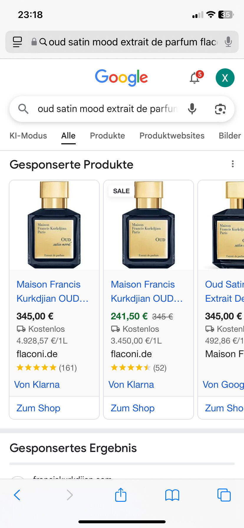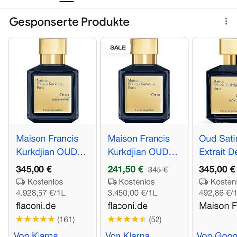 Wenn ich das Extrait google, wird mir bei flaconi zweimal das Extrait angezeigt. Aber einmal im Sale extrem günstiger.
